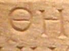 The beginning of the inscription. Written in Greek letters, it reads "Loukiou Septimiou Theronidou Paradoxou".