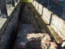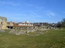 Looking towards the nave of the Norman abbey. You can see the cover building over the porticus with the graves of the early archbishops. This was a wing of the church of St Peter and Paul which lay under the later church closer to us; a marching portico stood on the nearer side.