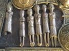 As regards the human figures, they are wonderfully mysterious. Whom are they meant to depict? There are only eleven of them now, but the dowel holes and spacings would indicate there may once have been nearly fifty of them. It seems clear that these are not random human figures, that they carry some specific meaning or narrative: the craftsman who made them knew whom he was meant to depict, the intended viewer would recognise them, and they were appropriate for the twelfth-century commemoration of a seventh-century saint. Unfortunately, that meaning is not accessible to us now; there is no medieval story or list or account that helps us define their identities. They might be local rulers, clergymen or saints, characters from the bible, from Irish or Norse legend or all three, personifications of theological concepts, or even images of personalities that played a role in the saint's now mostly-forgotten life.