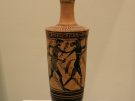 Theseus slaying the Minotaur, as depicted on an Athenian black-figure vase from the 5th century BC. (Heraklion Archaeological Museum).