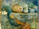Fresco showing a cockerel pecking at figs, pears and pomegranates, AD 45–79; Pompeii, House of the Chaste Lovers, Parco Archeologico di Pompeii.