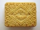 A custard cream biscuit, for essential comparison purposes with the item at the nearest part of the plate above. From Wikimedia Commons.
