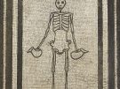 Roman mosaic showing a skeleton holding wine jugs, from Pompeii's House of the Vestals.