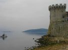 A panoramic view of the medieval town and the nearby mainland, as seen from across the western harbour.