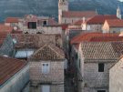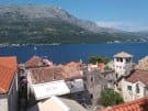 A view over the historic roofs of Korčula, across the Straits to the mountainous mainland of the northern Pelječac Peninsula