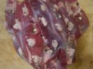 3. The next day, take the meat out of the marinade (keep the latter aside) and dab it dry with kitchen paper. Remove the pršut/bacon, garlic and cloves from the meat and keep them aside.