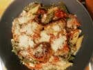 6. Heat the oil in a frying pan to not more than a medium heat and place the meatballs in it. Make sure they are not squeezed in too tightly at this stage - if necessary, use two pans or do them in two batches! Let them fry on one side for 5 minutes, then turn (using two spoons) and continue for another 5, then turn them again and fry them for 5 minutes or more until all sides have browned, but not burnt. [One major variation of this, as practised in Sicily, would be to bake the meatballs in the oven instead. It would require at least half an hour at a medium to high temperature and if you fancy it, I recommend looking for recipes beyond this one!]
