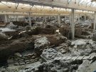 Clay boxes in situ in the House of the Benches during the 2018 excavations at Akrotiri.
