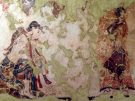 Reproduction of a fresco from Xeste 3, depicting a young (right) and adolescent (left) girl, two of the three "adorants".