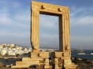 The Venetian tower shown on my photograph is set at the northeastern limits of the Venetian fortification, and it is like a pattern-book of ancient architectural fragments, most of them made of Parian marble. The tower incorporates column drums of at least two sizes, extensive parts of a Doric architrave from a large building, most likely a Classical temple, enormous building blocks from an Archaic structure, most likely an Archaic temple, and, as the icing on the cake, a circular building, transferred nearly whole from somewhere else, that was probably a fourth-century BC shrine to Hestia (the goddess of the hearth) and served here as the apse to a church or chapel.