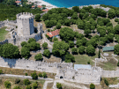 It would almost take an act of will to miss Platamon Castle as you drive south out of Macedonia towards Thessaly, so prominent is it on its rocky eminence, around which lesser roads swirl bewilderingly. And such an act of will would really be folly, because apart from the obvious military importance of its perch high above the sea, the remains of the castle, forming a stony diadem crowning the rounded summit of the hill, give it a singularly attractive quality. It very much gives the impression of being a building that wants you to know it’s a castle. It could quite easily stand for one in some visual dictionary, with its pale grey enceinte wall standing out against a lush dark green shawl of trees and its burly octagonal great tower, the donjon, thrusting its way skyward against the intense blue of the Macedonian sky. There we are: a castle with an inner bailey and a great outer one, as clear as day in an aerial photograph. A textbook view.