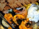 Our image shows a small sample of what we tried: grilled shrimps with sour soft cheese and poached eggs, accompanied by homemade pita bread. It was absolutely delicious, flavours and textures melding into a unique whole. That applies to every other delight we tried, including an amberjack carpaccio - Greek sushi - and delicate ravioli with a filling of shrimp and asparagus.